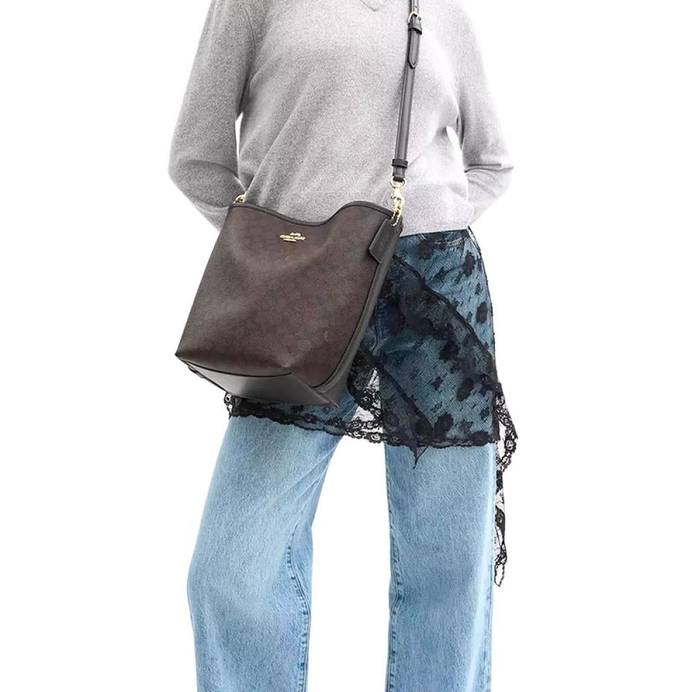 شنطة كتف نسائية دلو كبيرة من سيتي من القماش المميز ماركة كوتش لون بني