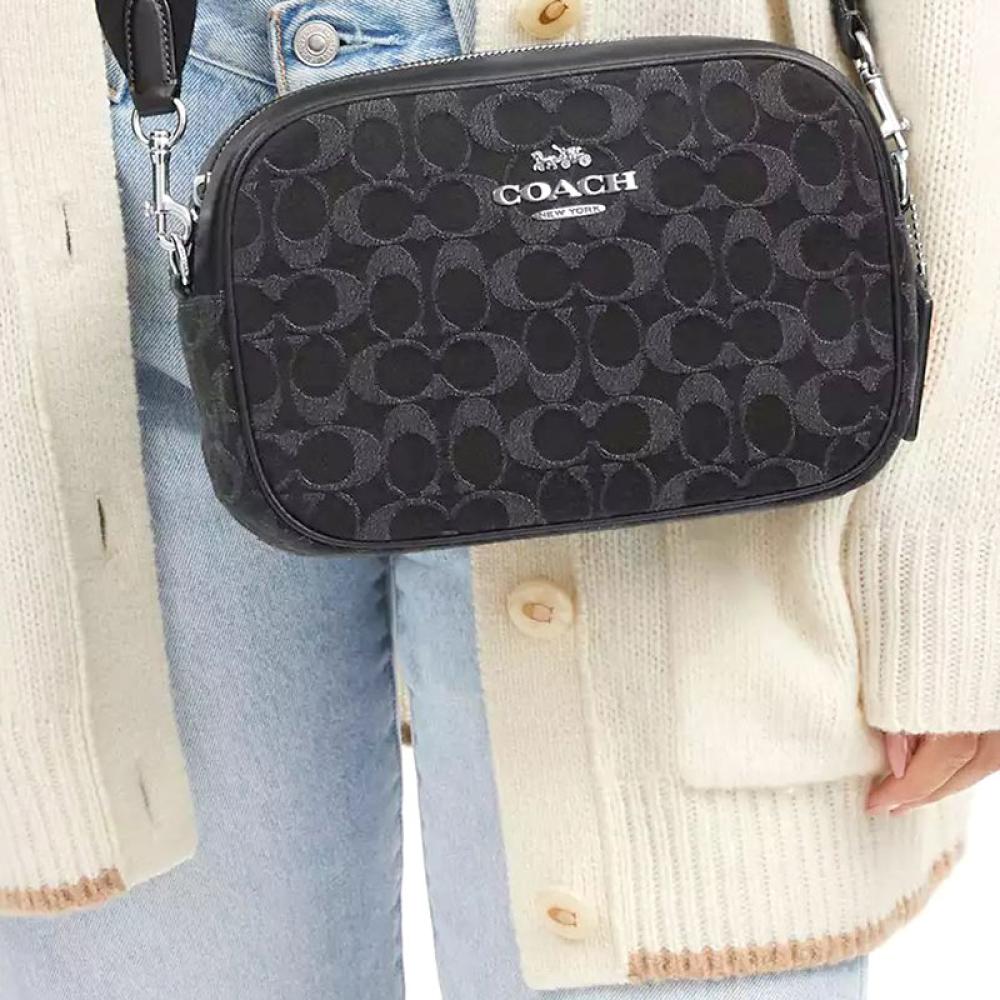 شنطة كتف نسائية كاميرا جيمي مصنوعة من قماش الدنيم المميز ماركة كوتش لون أسود