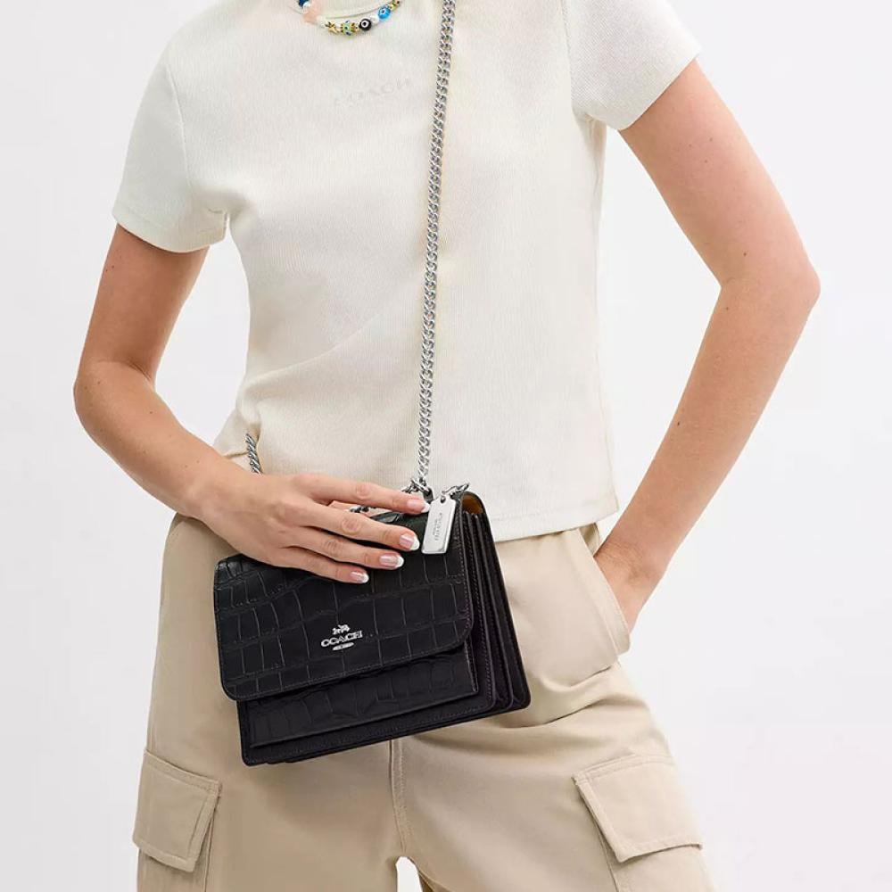 شنطة كوتش هي المفضلة حقا ليلا ونهارا مع حزام سلسلة يمكن ارتداؤه بثلاث طرق: كروس بودي ، طويل أو مزدوج على الكتف.
