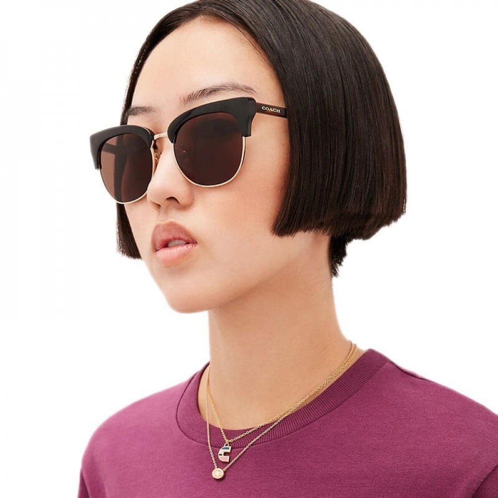 - نظارة شمسية ذات عدسات لامعة مزينه بشعار ماركة كوتش مما تضيف مزيداً من السحر والجمال على إطلالتك.