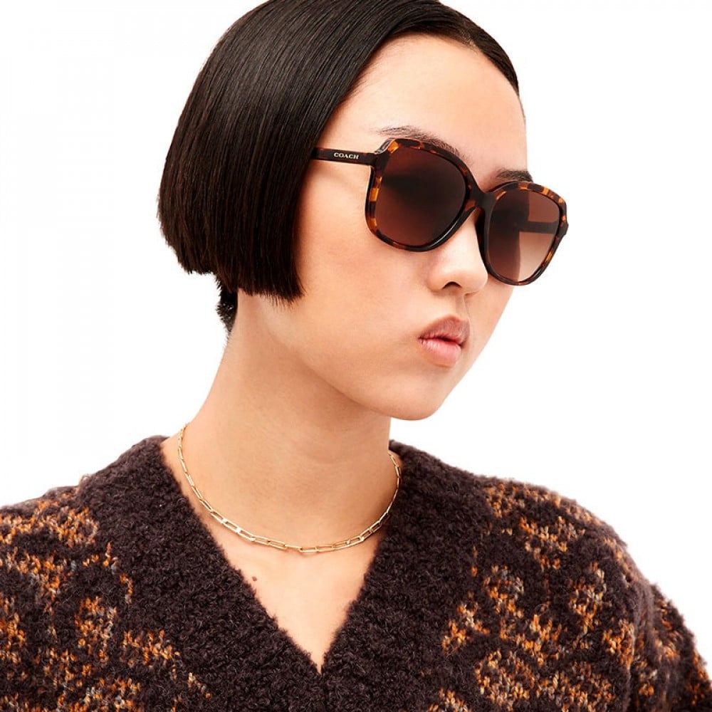 إن العيون من اهم اجزاء جسم الانسان لذا يجب علينا حمايتها ولاننا نعلم انكي دائما تتطلعي الى كل ما هو جديد و تتبعي أحدث خطوط الموضة بعناية نقدم لكي سيدتي هذا المنتج نظارة شمسية كوتش مربعة هندسية والذي يكسبكي اطلاله انيقه وبهاء لا يضاهى، اقتنيها الان بأروع الإطلالات بحماية فائقة لعيونك من اشعة الشمس الضارة.
